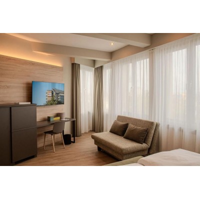 Located in Offenbach, East Five Hotel offers a bar and free WiFi, as well as free private parking for guests who drive. It is less than 3.9 km from the riverside museum district and 4.2 km from the Iron Bridge. The property is approximately 4.6 km from the Steid Museum, 4.6 km from the German Film Museum, and 4.9 km from the Goethe House. This non-smoking property is 4.3 km from St. Bartholomew's Cathedral. The hotel provides air-conditioned rooms with a desk, electric kettle, refrigerator, safe, flat-screen TV, and private bathroom with shower. All rooms at East Five Hotel include bed linen and towels. Breakfast is available in buffet, American, or vegetarian options. The reception staff speaks German, English, Hindi, and Turkish and is available 24/7 to assist guests. The property is 4.9 km from Römerberg and 5.2 km from the English Theatre. Frankfurt Airport is 15 km from the property.