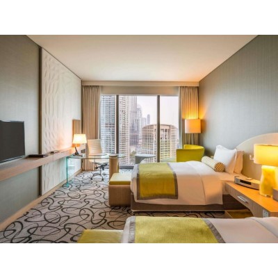 Located in the heart of Dubai, just steps from The Dubai Mall and a 10-minute drive from the Burj Khalifa, Sofitel Dubai Downtown is an idyllic oasis that perfectly blends urban sophistication with elegant luxury. It offers air-conditioned rooms and free private parking. Rooms feature flat-screen satellite TVs. Some rooms have a seating area for your relaxation. Each room has a private bathroom. For your comfort, rooms provide bathrobes, complimentary toiletries, and a hairdryer. Immerse yourself in the French art of living, innovative cuisine, and rejuvenating spa experiences. Les Cuisine offers a culinary journey from around the world in Downtown Dubai. La Patisserie serves unique pastries, bringing you both gourmet and French flair. Luxurious meeting rooms, banquet halls, ballrooms, restaurants, bars, and lounges offer impressive venues, delicious food, and warm service. The pool terrace on the 5th floor is an urban oasis overlooking the bustling Downtown Dubai and its skyscrapers, surrounded by soft lawns, a poolside bar, and sun loungers. Sofitel Fitness, located on the second floor, helps guests stay in shape. Sofitel Dubai Downtown offers a 24-hour front desk, concierge service, a hair salon, and car rental services. It is 4.1 km from the Dubai International Convention and Exhibition Center, 3.7 km from Safa Park, a 15-minute drive from Dubai International Airport, and a 90-minute drive from Abu Dhabi International Airport.
