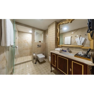Comfortable Accommodations: Manor Hotel in Tashkent offers comfortable rooms with air-conditioning, private bathrooms, and city views. Each room includes a work desk, minibar, and free WiFi.Exceptional Facilities: Guests can enjoy spa facilities, a fitness centre, and a restaurant. The modern, romantic restaurant serves local, Asian, and European cuisines, complemented by a buffet breakfast with halal options.Convenient Location: Located 4 km from Islam Karimov Tashkent International Airport, the hotel is near an ice-skating rink. Public transport options are highly rated by guests.