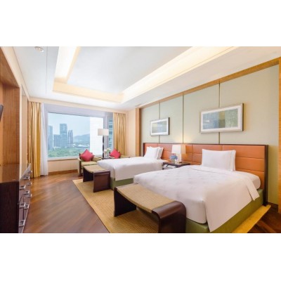 Located in the heart of Futian District, The Ritz-Carlton, Shenzhen offers luxurious accommodations, free Wi-Fi, and free parking. The hotel boasts elegant décor, an outdoor swimming pool, and six dining options. It is 30 km from Shenzhen Bao'an International Airport and directly opposite the Shenzhen Convention and Exhibition Center. The Ritz-Carlton, Shenzhen features stylish, spacious, and comfortable rooms equipped with large flat-screen satellite TVs and DVD players. Marble bathrooms feature separate bathtubs and showers. The Ritz-Carlton Spa offers luxurious pampering experiences with private treatment rooms, a comfortable steam room, and a beauty salon. Guests can work out with a personal trainer or enjoy private poolside yoga classes. Flavorz's open kitchen serves international and Asian cuisine, while Paletto offers modern Italian dishes. Other dining options include Xingli Chinese Restaurant and Fix Café. Curv Bar and Onyx Lounge offer refreshing cocktails.