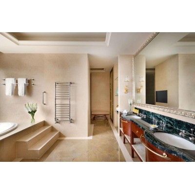 Located in Qingdao's central business district, the Shangri-La Hotel is a 10-minute walk from May Fourth Square. The hotel features a fitness center, spa, sauna, and four dining options. It is 60 km from Qingdao Jiaodong International Airport, 1 km from the Olympic Sailing Center, and 2.9 km from Badaguan Scenic Area. It is also close to MixC, one of China's largest shopping malls. Qingdao Railway Station is a 12-minute ride away by Metro Line 3. The Shangri-La Hotel, Qingdao offers rooms in the City Wing and Valley Wing, which are connected. All rooms feature a flat-screen TV and minibar. Rooms in the Valley Wing offer even more amenities. Yum Café offers à la carte dining and a sumptuous international buffet with an open cooking station featuring live seafood, Chinese, Japanese, and Korean dishes, fresh salads, and tempting desserts. Flying Catch serves authentic Mediterranean cuisine and fine wines in a modern setting. Shang Palace is the ideal place to sample Huaiyang, Cantonese, and Shandong cuisine. The Lobby Lounge offers live evening entertainment and a variety of drinks and cocktails, making it one of the hotel's most popular gathering places. To help you relax, the fitness club features a 25-meter swimming pool, a children's pool, a sauna, and a steam room. The CHI Spa offers over 30 different facials, body treatments, and massages.