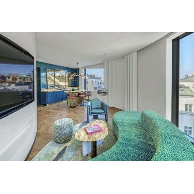 Elegant Accommodation: W Prague in Prague offers a 5-star hotel experience with spa facilities, a sauna, fitness centre, indoor swimming pool, and a terrace. Guests enjoy free WiFi, a modern restaurant, and a bar.Comfortable Amenities: Rooms feature air-conditioning, private bathrooms, balconies with city views, and amenities such as bathrobes, minibars, and flat-screen TVs. Additional services include beauty treatments, yoga classes, and a hot tub.Prime Location: Located in the city centre, the hotel is a short walk from the National Museum and Charles Bridge. Vaclav Havel Airport is 15 km away. Nearby attractions include Old Town Square and Prague Castle.Guest Satisfaction: Highly rated by guests, W Prague provides excellent service, ensuring a memorable stay.
