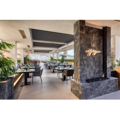 This luxury Athens hotel is ideally situated in the heart of Athens. It boasts a rooftop pool with Acropolis view, and offers exquisite dining and luxurious guest rooms with views of the city, Lycabettus Hill and the Acropolis. Every room is well appointed with stylish furnishings. Standard room features include a satellite TV, individual climate control and minibar. Located on the rooftop with view to the city, the Peak Health Club & Spa features an extensive gym, 3 treatment rooms, and offers signature Ligne St. Barth and Thalgo Treatments. Divani Caravel features 3 restaurants and 2 bars. The new, sophisticated JuJu Bar& Restaurant with its art-deco design serves creative cuisine accompanied by signature cocktails, daily from 18:00 to 1:00. Business facilities include 16 meeting rooms appointed with latest audiovisual facilities. WiFi is provided throughout the entire property, meeting rooms and guest rooms. The Divani Caravel’s award-winning staff are available at all hours, happy to provide a wide range of services and facilities to ensure guests’ comfort. Divani Caravel is just minutes away from the hip Kolonaki district. The National Gallery is within easy reach, 250 metres away.